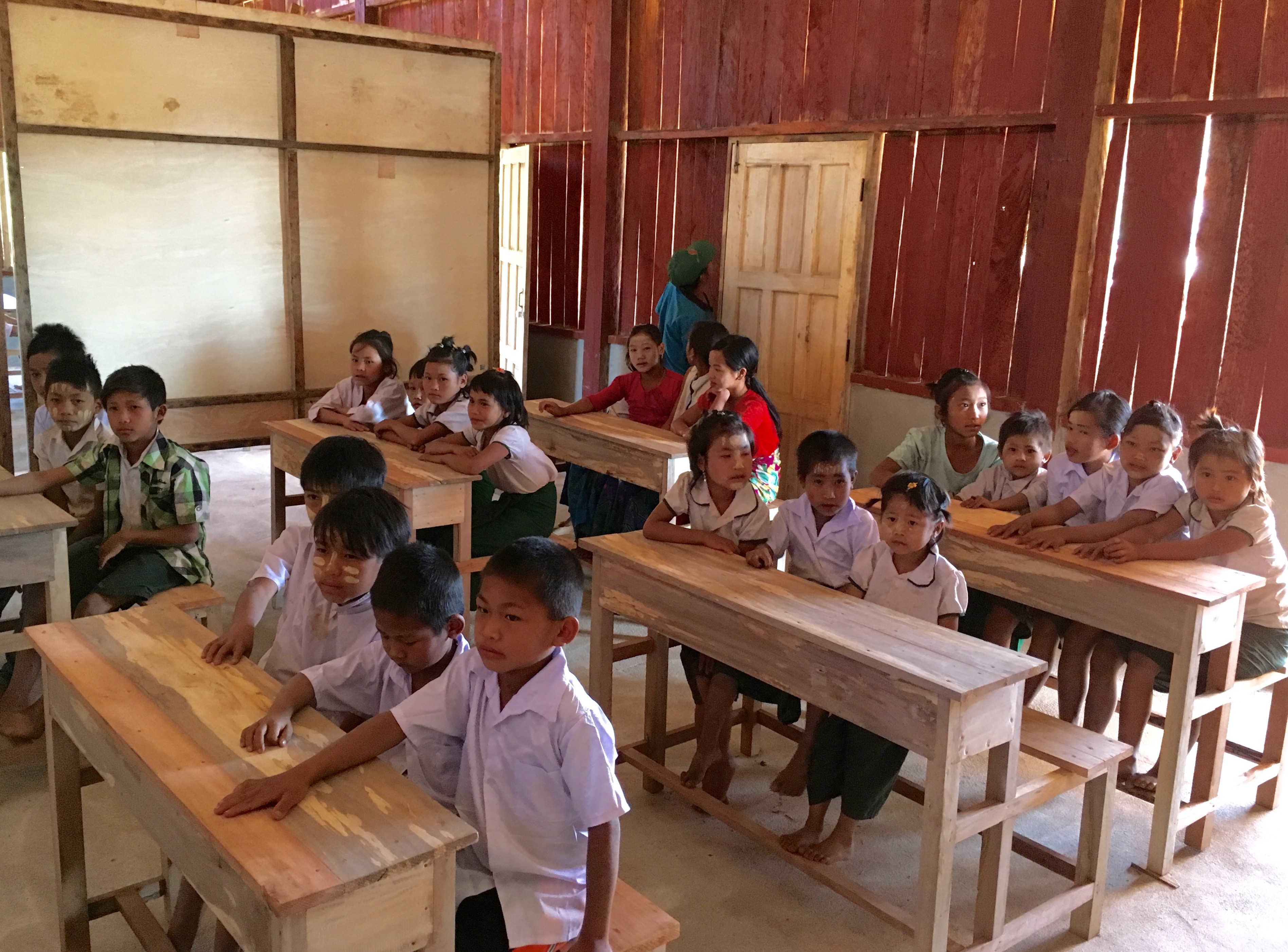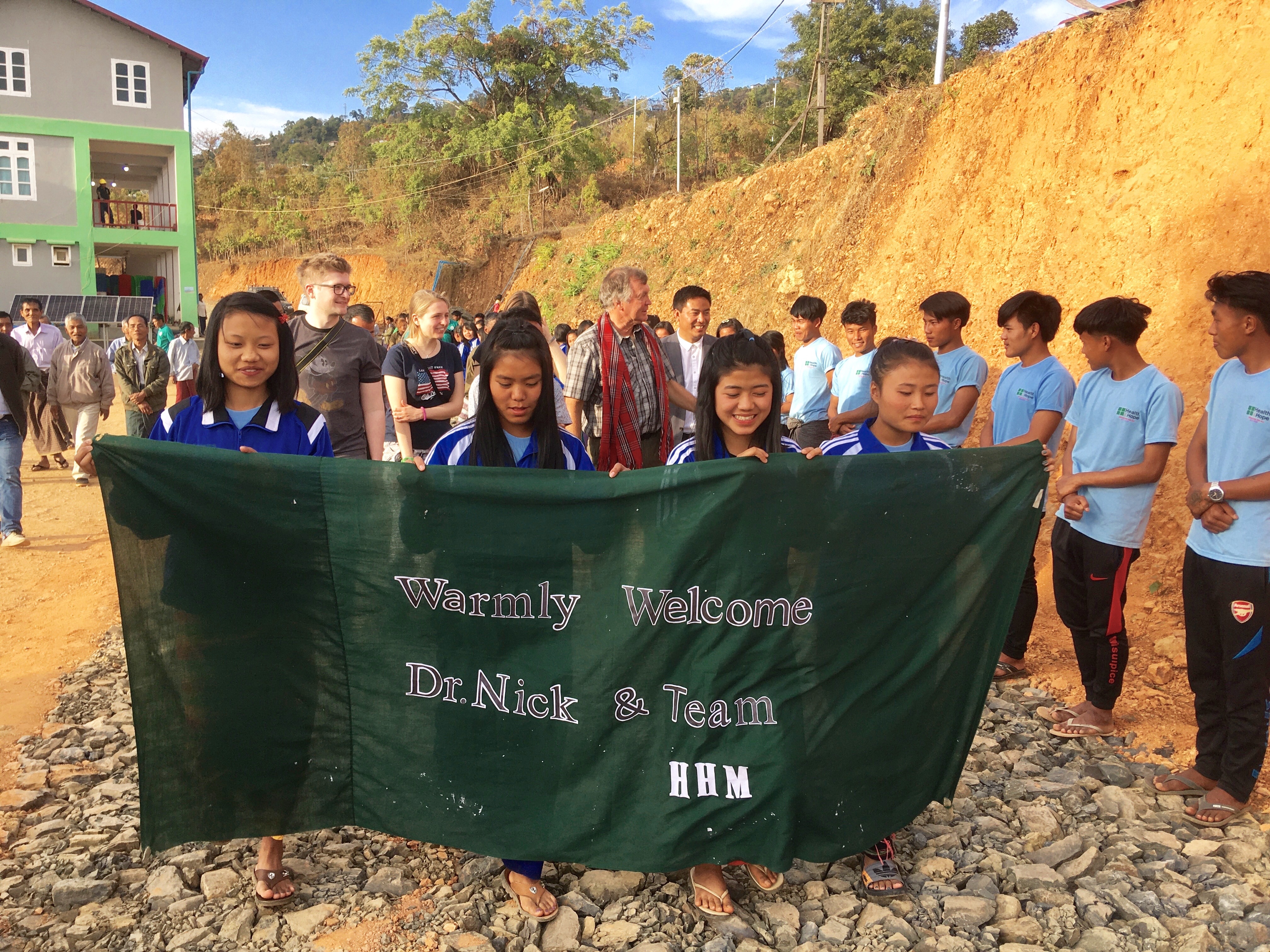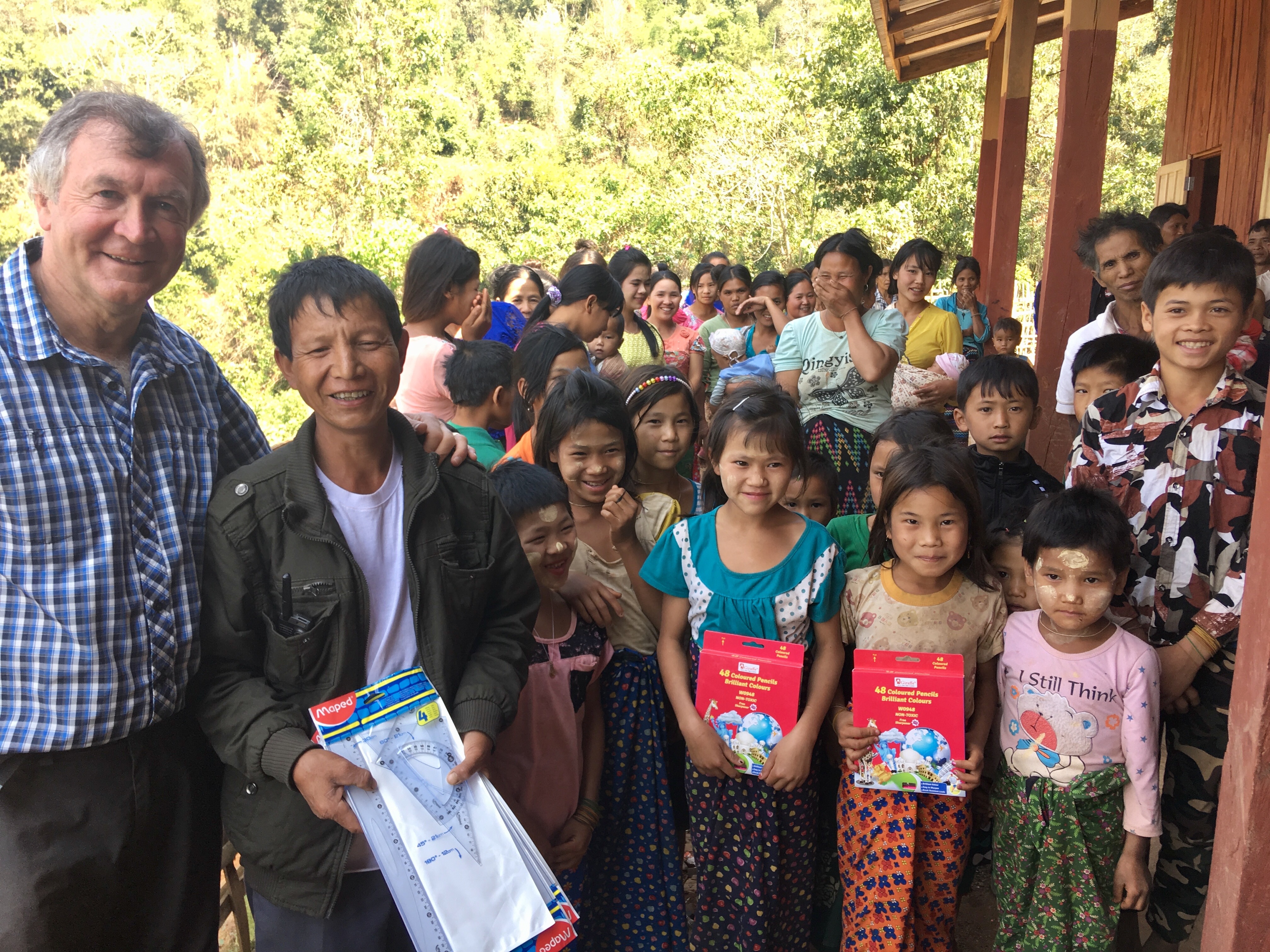 Dr Nick first travelled to Myanmar with Claudine in 2017 to Eastern Shan State to see a project sponsored by Guernsey and implemented by CLMES that had provided clean water, a hydro-electric power supply and new primary schools in 4 remote Lahu hill-tribe ‘leprosy’ villages. Before leaving they were told that the grant had been insufficient to build a school at another hill-tribe village called Salabo (top photo above) so they undertook to fund that themselves.
